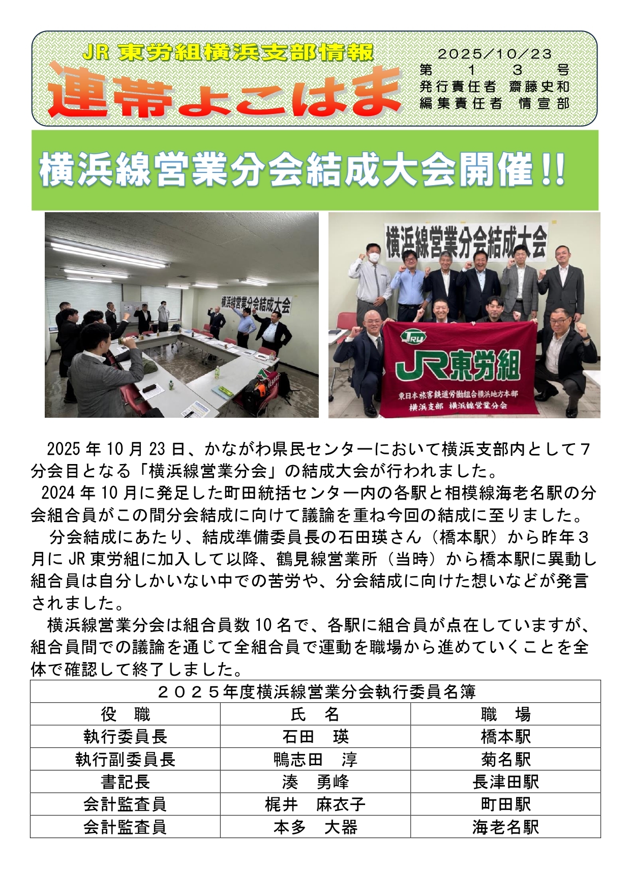 横浜線営業分会結成大会開催!