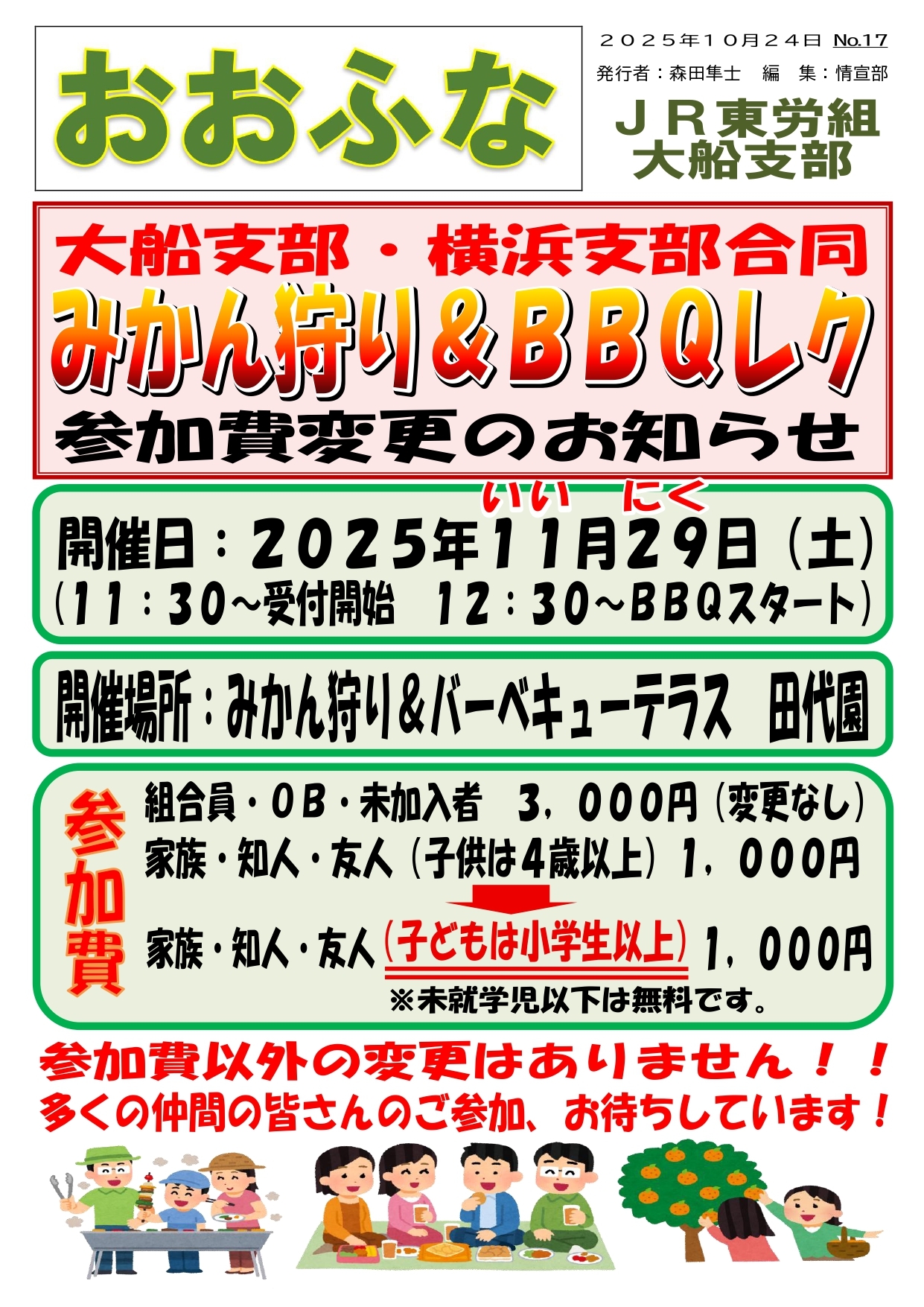 みかん狩り&BBQレク 参加費変更