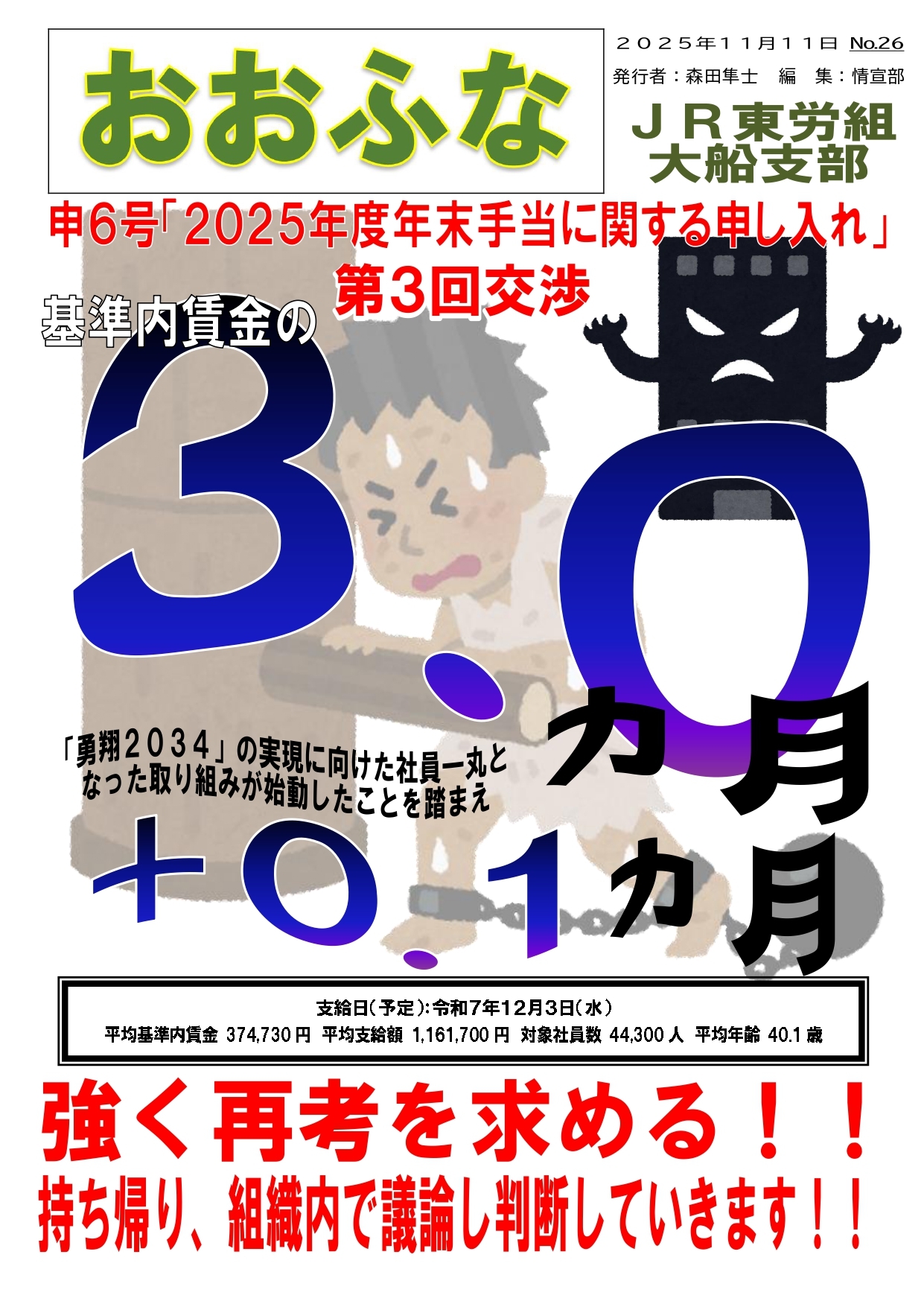 申6号「2025年度年末手当に関する申し入れ」第3回交渉