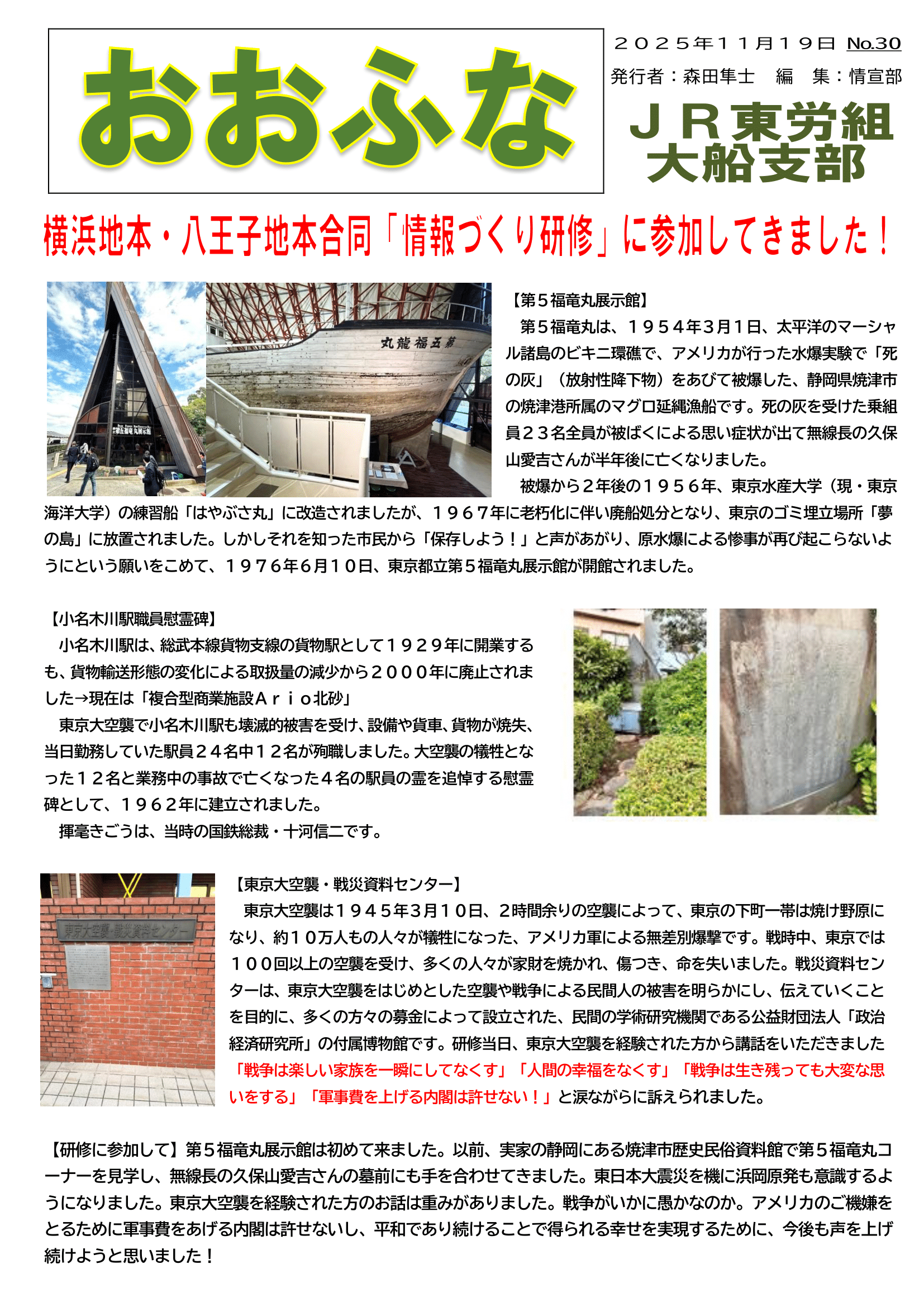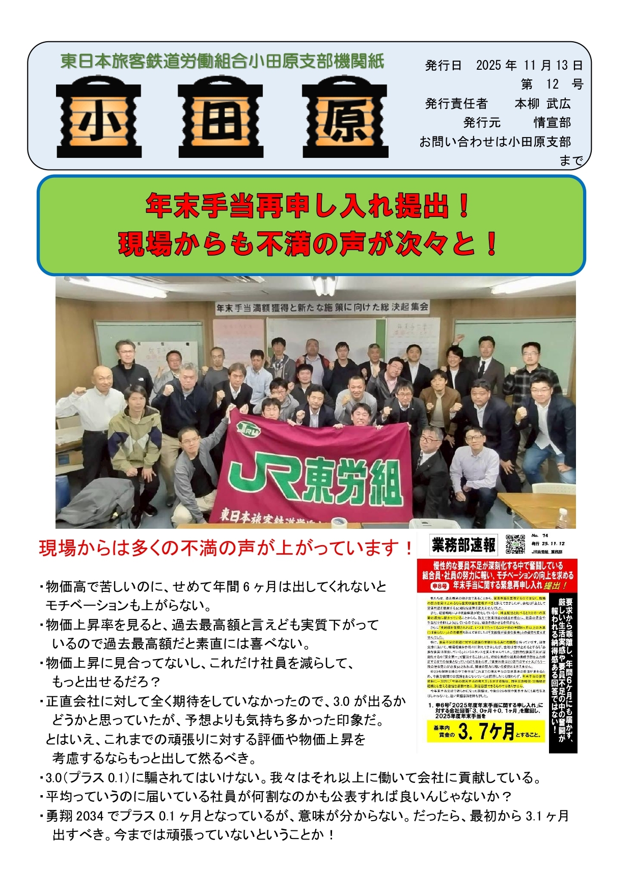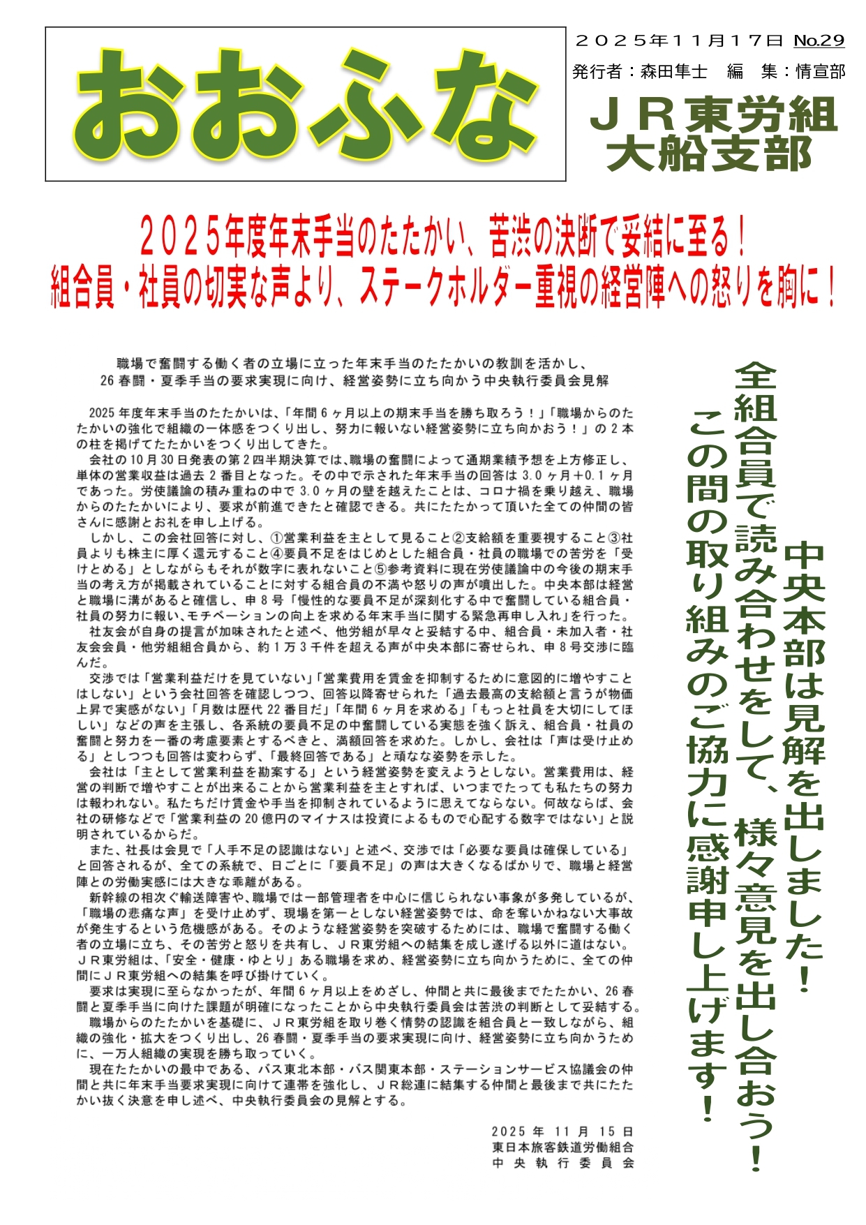 大船支部内各分会で年末手当要求実現に向けた職場集会開催!