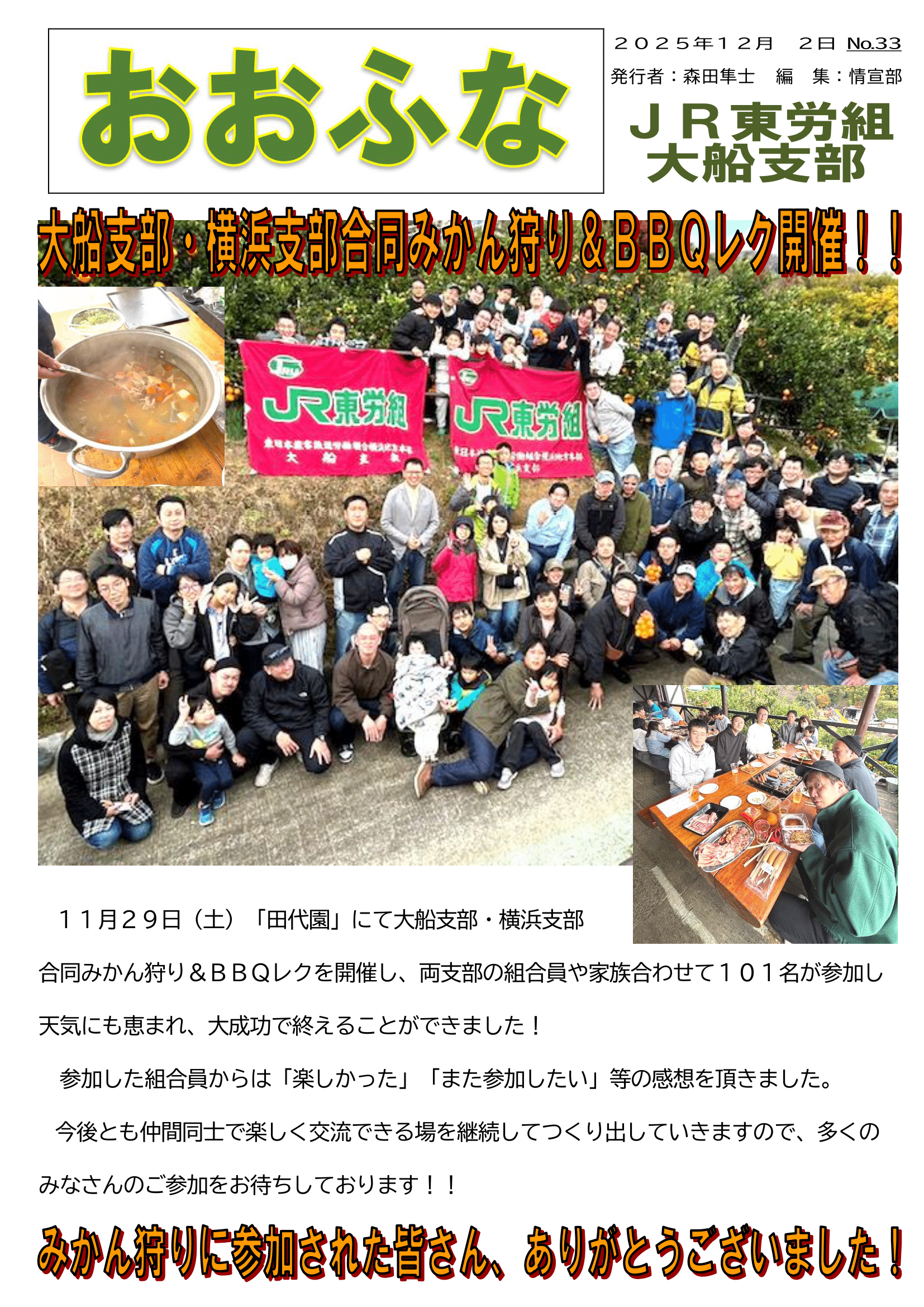 横浜支部・大船支部合同レク「みかん狩り」の詳細についてのご案内です!